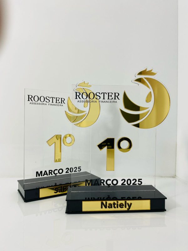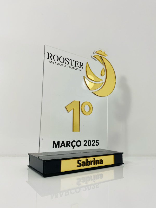 Troféu Acrílico Cristal com Impressão UV e Relevo Espelhado